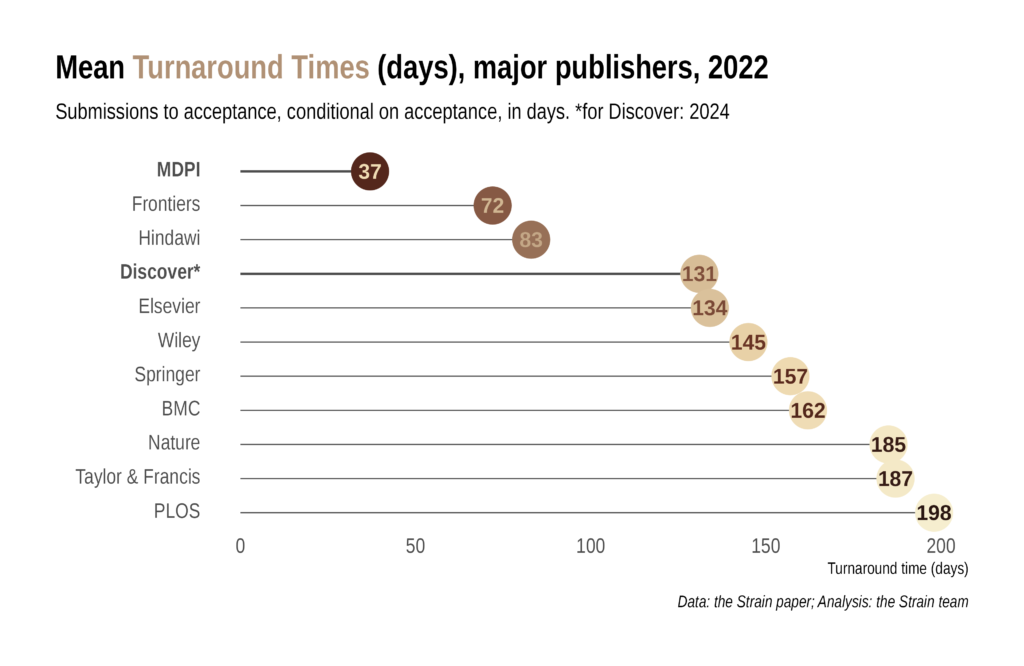 「学術誌「Discover」は…あらゆる分野の研究に出版の場を提供します。…私たちの使命は、すべての研究成果が査読で検証され、信頼できる出版社に掲載されることを保証することです」。そして、私たちはそれを迅速に行ないます。