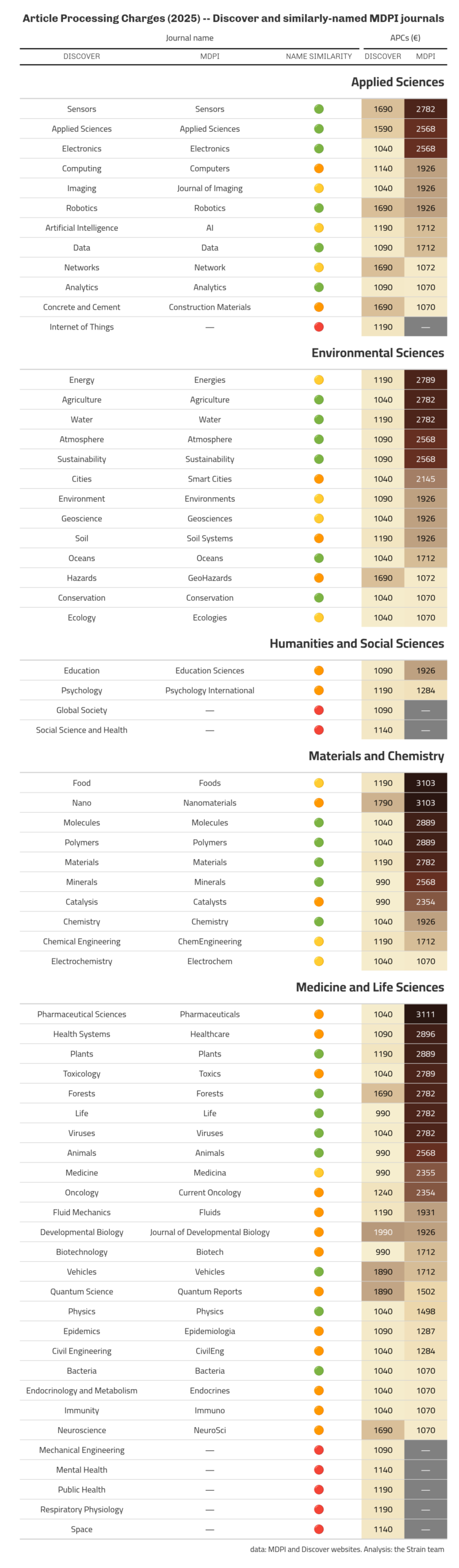 本論文の最後尾に、長くて退屈な付録として、Discover誌の全リスト、対応するMDPI誌、2025年のAPC(論文掲載料)の額をリストした。