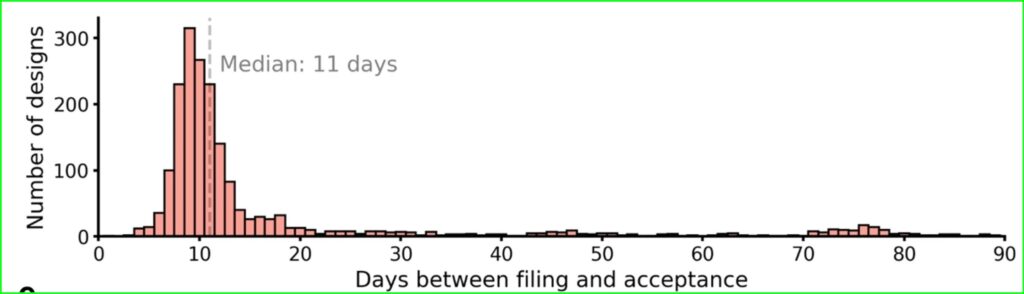 参考までに書くと、米国で、意匠特許が米国特許商標庁(US Patent and Trademark Office)に登録されるまでの平均期間は約22か月である。