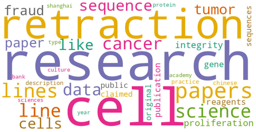 各単語のフォントサイズは、FAIRS会議での使用頻度に比例している。これらの単語は研究不正の研究者に馴染み深い。