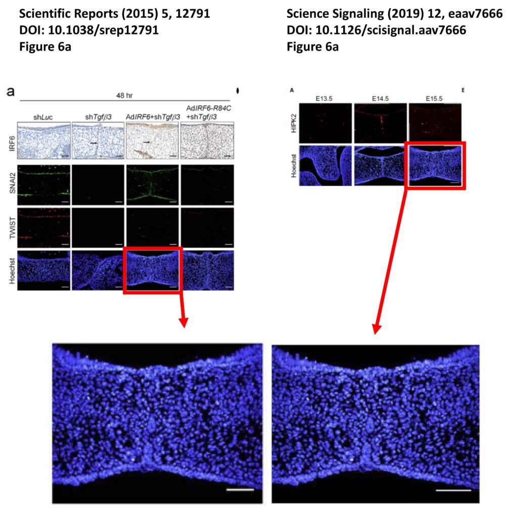 研究公正局の発表の後、著名なネカトハンターの ポール・ブルックス(Paul Brookes)は、“ジョージ”・クーが第一著者の「2019年8月のSci Signal」論文に重複画像があると指摘した。