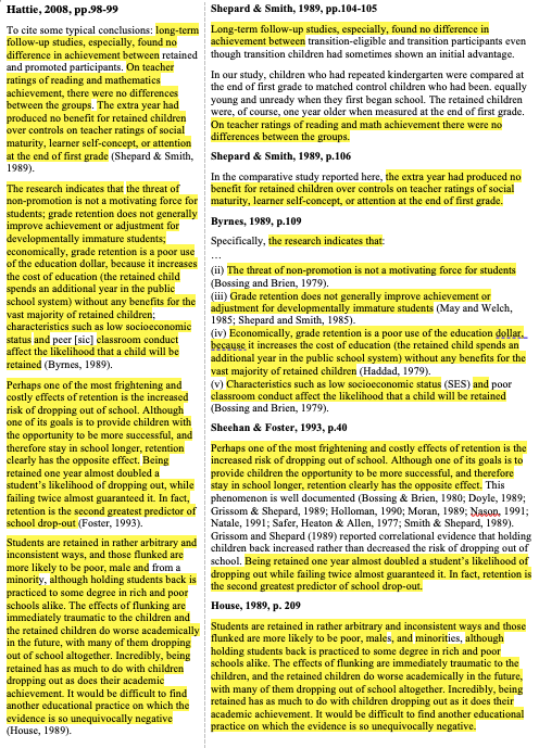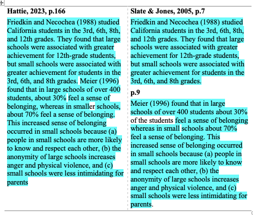 まず、適切な引用なしの逐語流用した12個のセンテンスを見つけた。その中には、「人々」や「個人」といった単語を単に「生徒」に置き換えた箇所が7個もあった。