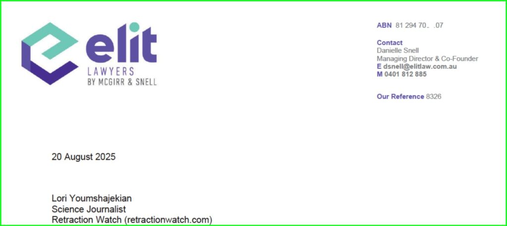 ハッティの弁護士が「撤個監視(Retraction Watch)」送ってきた声明文(2025年8月2日)を「撤個監視(Retraction Watch)」が公開した。以下はその冒頭部分(出典:同)。全文(2ページ)は → https://retractionwatch.com/wp-content/uploads/2025/08/Letter-to-Ms-Youmshajekian-re-Prof-Hattie-20.08.2025_Redacted.pdf